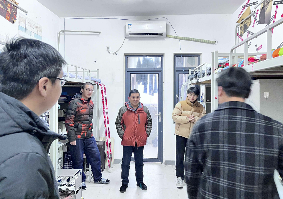 新学期伊始,为深入了解学生返校后的学习生活情况和需求,加强安全教育,确保学生尽快进入学习状态、认真备考,2月13日下午,tyc7111cc太阳成集团党总支书记袁军、学工干事秦金峰和全体辅导员深入学生宿舍开展走访工作。