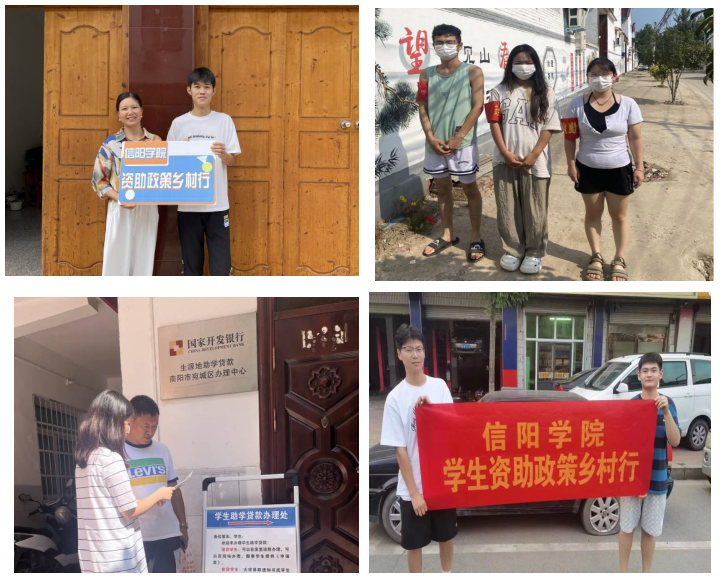 暑假期间,学院成立资助政策宣传小分队,积极开展了学生资助实践活动。小组成员利用暑期实地走访家乡,分赴江西省赣州市会昌县、江西省景德镇市、南阳宛城区、信阳市光山县等多个地方开展“资助政策乡村行”宣传活动,让更多的家庭了解国家关于大学生资助政策,助力贫困学子成长成才。团队成员们在乡村、社区、学校、地方生源地助学贷款办理中心等地,结合自身受助经历,用通俗易懂的语言详细介绍国家助学贷款、奖助学金、勤工助学、困难补助等多种大学生资助体系,耐心解答大家的疑问,帮助大家深入细致地了解国家资助育人政策,并提醒大家要通过官方渠道获取国家资助相关信息,警惕“校园贷”陷阱。