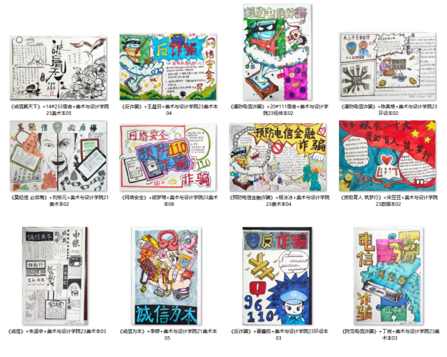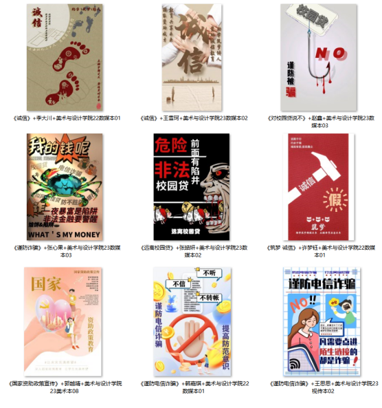 充分发挥第二课堂主阵地作用,加强文化宣传,学院开展诚信教育海报、手抄报制作评比活动。鼓励学生结合专业兴趣与特长,以诚信教育、资助政策宣传、预防电信金融诈骗和远离不良校园贷等为主题组织制作海报、手抄报,通过比赛,多渠道、多层次开展学生资助诚信教育,营造浓厚的宣传氛围。