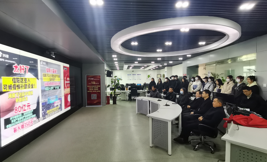会后,在王军等人的陪同下,张瑞瑞一行参观了信阳日报社中央厨房、融媒体中心、MCN工作部、视频部等运营工作室,并合影留念。