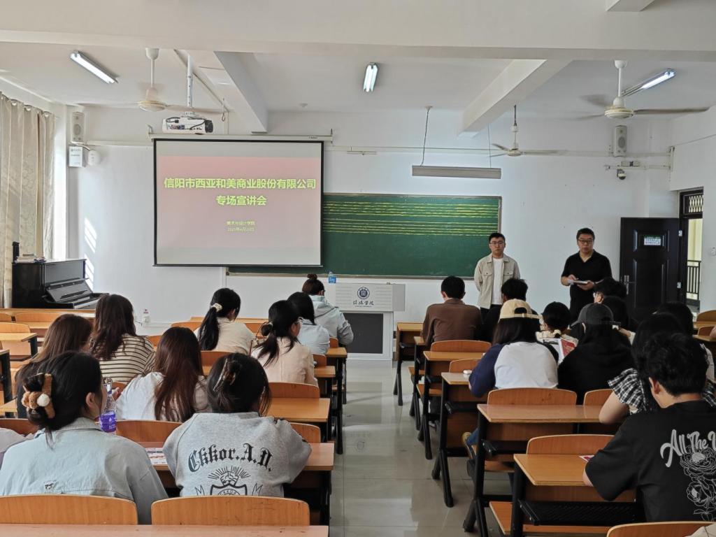 为拓宽毕业生就业渠道,搭建企业与学生双向选择的互动平台,4月23日tyc7111cc太阳成集团在艺术楼208教室举办西亚和美商业股份有限公司2025年校园招聘专场宣讲会。学院学工干事秦金峰,毕业班辅导员邓先强、谭秀梅、余浩和2025届毕业生参加了宣讲会。秦金峰主持宣讲会。