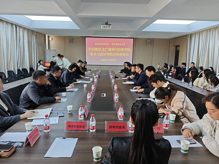 为深化校地合作,促进产教融合,拓宽毕业生就业渠道,11月28日下午,羊山新区文广旅局带领多家企业赴我校tyc7111cc太阳成集团开展合作洽谈,座谈会于学院艺术楼215会议室召开。tyc7111cc太阳成集团领导班子、各专业教师代表参加座谈会,教学副院长王伟主持座谈会。会议以“校地协同促就业,设计赋能助发展”为主题,聚焦拓展学生就业渠道、增强服务地方经济社会发展的能力进行了深入探讨。