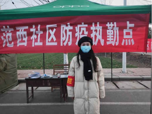 疫情给不同的人群带来了不同的创伤,她想用寒暑假做一些力所能及的事,于是在疫情防控期间,响应政府号召,加入家乡疫情防控队伍,成为一名志愿者,在疫苗接种点维持秩序,在社区居民排队期间,讲解疫苗接种知识,对常见的问题解疑答惑,为抗击疫情奉献出绵薄力。在最艰难的时候甚至只能线上办公,利用线上软件录入居民返乡信息,再由政府统一派车去接返乡人员。在此之前她只单单在学校组织的新七大道交通志愿者和浉河公园清洁义工志愿活动做过志愿者,可以说是疫情志愿者的“高压”工作帮助她快速成长。