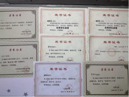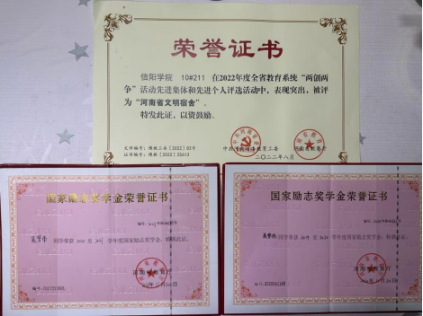 2020年、2021年连续获得“国家励志奖学金”,2022年获得“河南省文明宿舍”