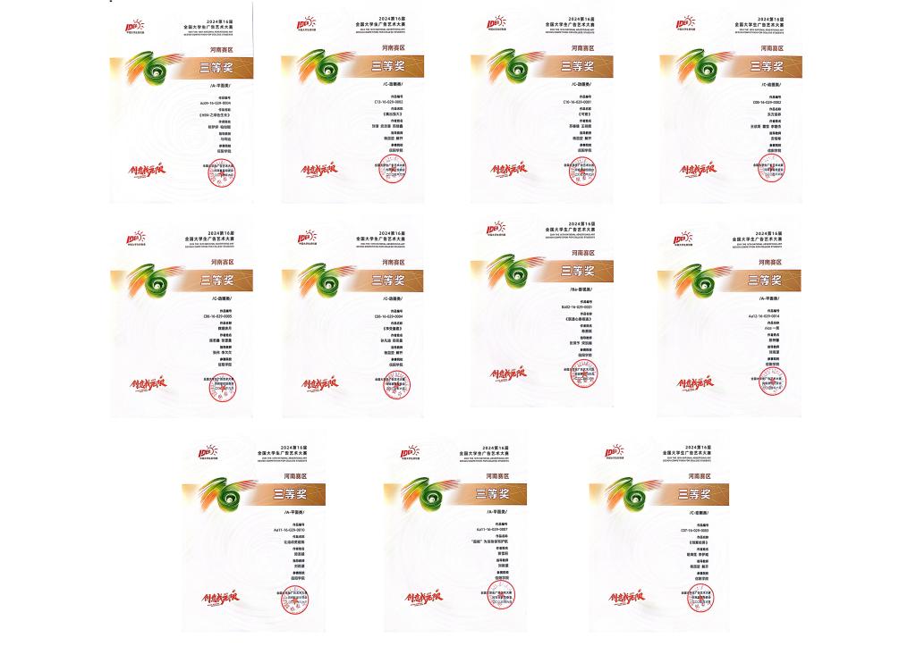 近日,第十六届全国大学生广告艺术大赛全国总评审落下帷幕,我院共获30项荣誉。其中,国家级优秀奖2项,省级奖项22项,省级优秀指导教师荣誉6项。创下我院近年来河南省赛区选拔最好成绩!