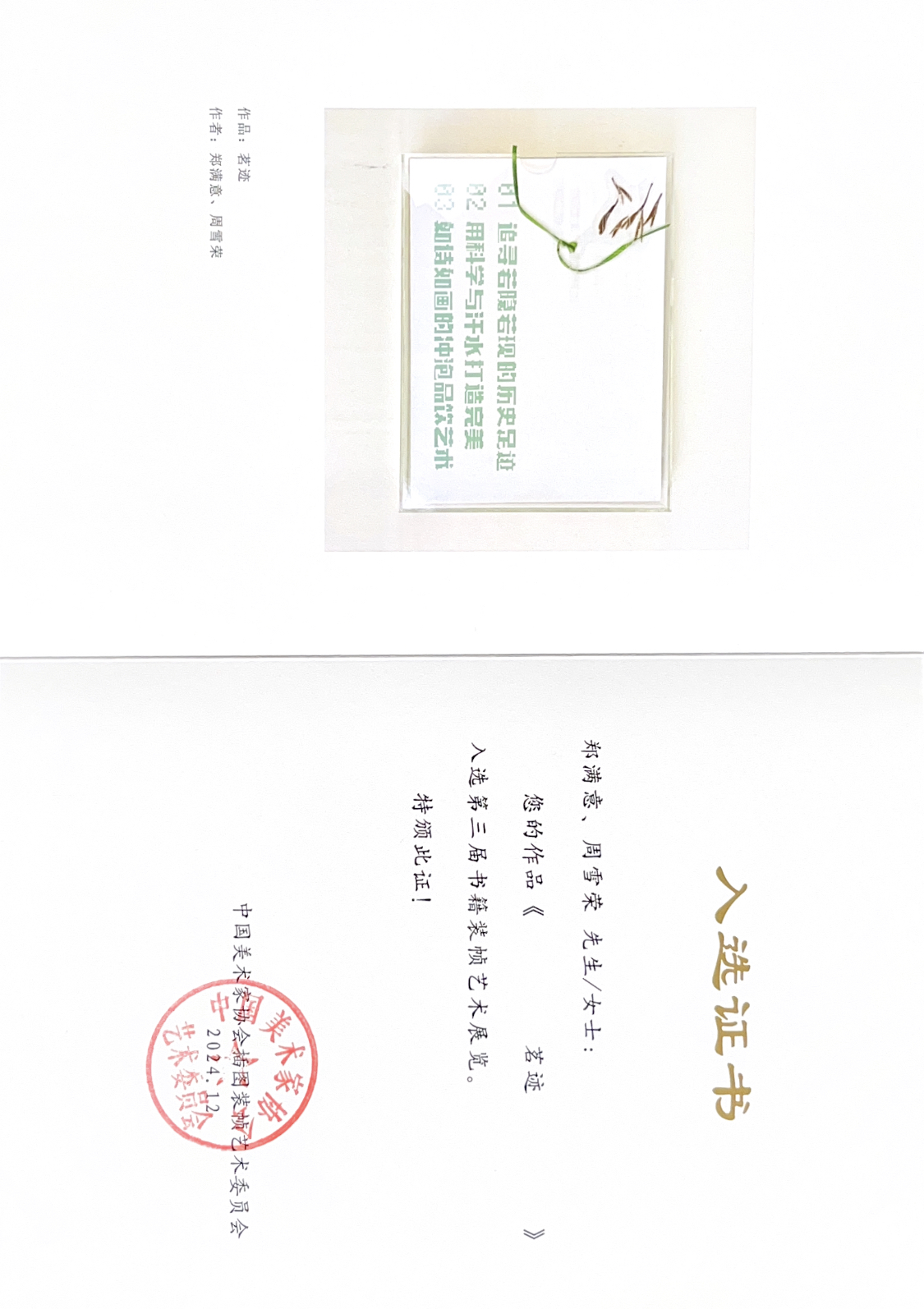 魏迁老师的作品《一个人的纳兰词》,以独特的蓝晒视觉语言和创新的排版设计,巧妙地将内容与形式相融合,为读者带来别具一格的阅读体验。郑满意老师、周雪荣同学的《茗迹》则在材料运用和工艺细节上别出心裁,使书籍在外观与触感上都给人留下深刻印象。