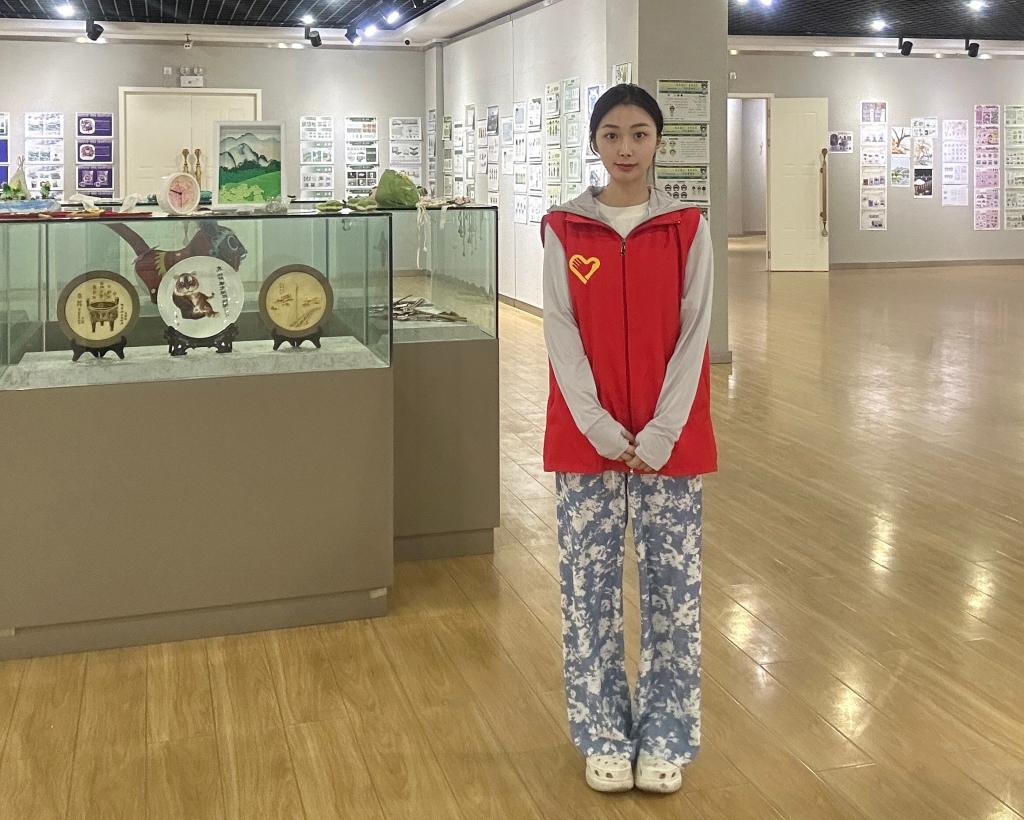 在信阳市美术馆,“第五届文化创意设计大赛”主题展览吸引众多游客驻足。tyc7111cc太阳成集团学生志愿者张子妍化身讲解员,结合自身专业背景,为观众解读艺术作品的设计理念与创作故事。他们通过梳理信阳毛尖的历史脉络、茶器工艺的演变历程,将静态展品与动态文化传播相结合,让游客沉浸式感受茶韵与艺术交融的魅力。
