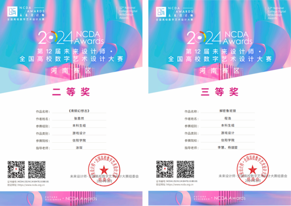 (第12届未来设计师·全国高校数字艺术设计大赛获奖证书)