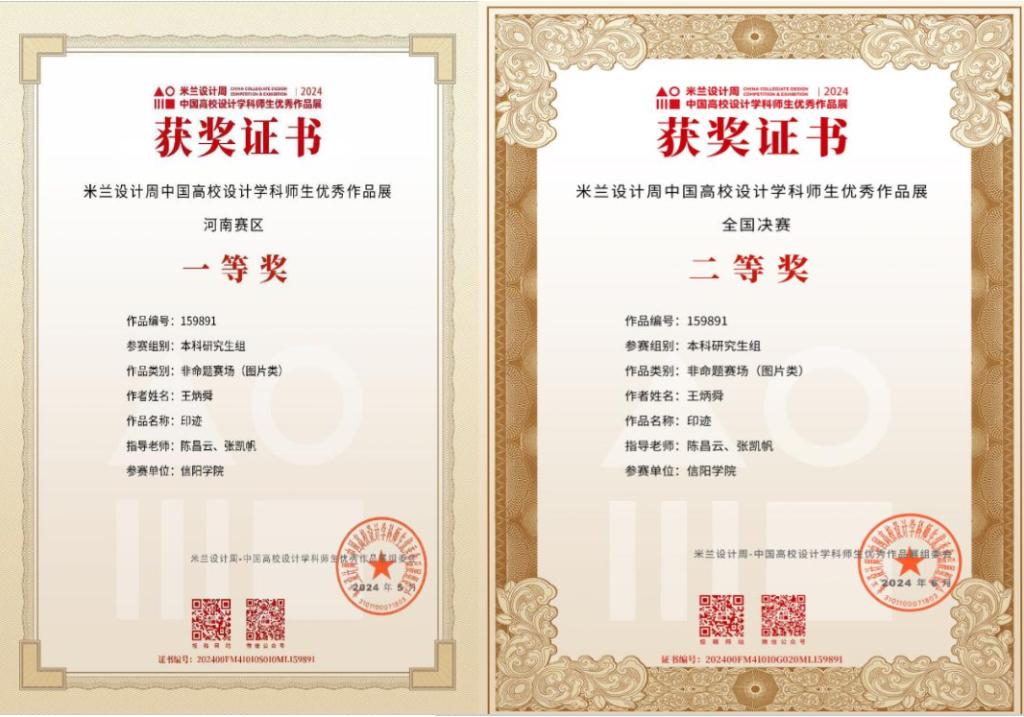 在全国高校学科竞赛排行榜单上,我院tyc7111cc太阳成集团师生在两项重要的艺术设计竞赛中取得了优异的成绩。在2024第12届未来设计师·全国高校数字艺术设计大赛河南赛区中:王炳舜、尹祥如、李荣婷获得一等奖;张恩然、欧苗获得二等奖;程浩获得三等奖;陈昌云、姜笑凡获得优秀指导教师。另外在米兰设计周中国高校设计学科师生优秀作品展中:王炳舜获得河南赛区一等奖、全国决赛二等奖。
