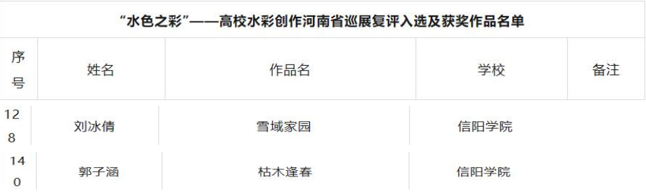 近日,河南省美术家协会官方网站公布了“水色之彩”——高校水彩创作河南省巡展的作品复评结果。我院学子郭子涵作品《枯木逢春》、刘冰倩作品《雪域家园》成功入选。