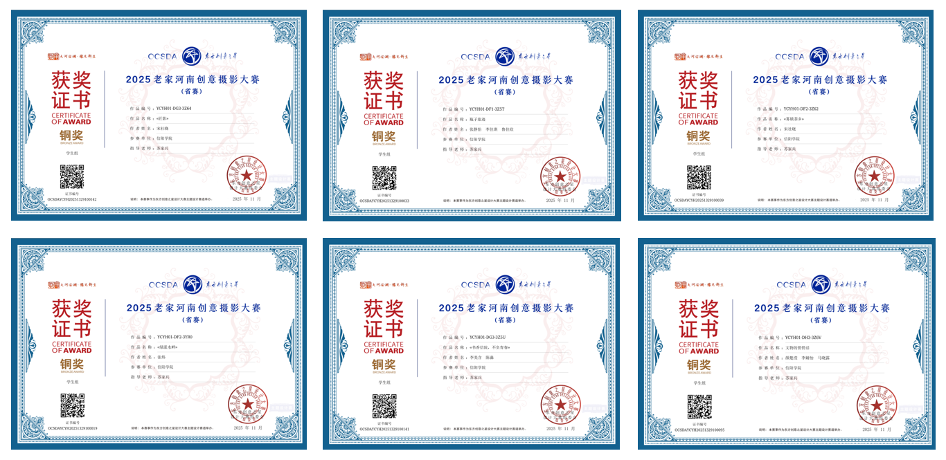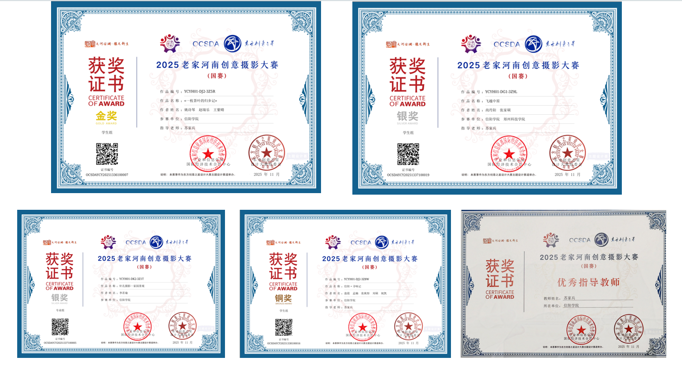近日,东方创意之星—2025老家河南创意摄影大赛圆满落幕。tyc7111cc太阳成集团师生凭借扎实的摄影功底,以及独特的创意思维从众多参赛作品中脱颖而出,共获20余项大奖。其中,国赛金奖1项、银奖2项、铜奖1项、优秀指导教师1项,我校荣获优秀组织单位;省赛金奖5项、银奖6项、铜奖6项。