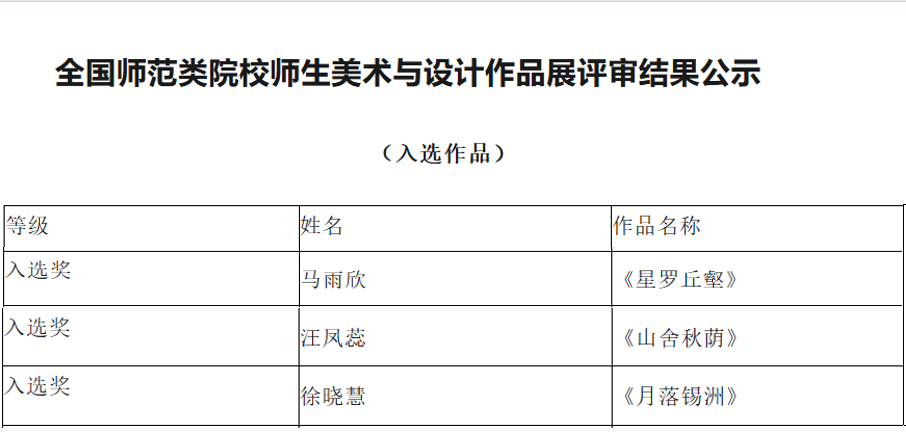 我院学生作品入选全国师范类院校师生美术与设计作品展