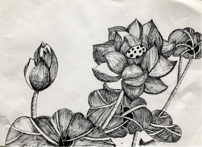 2019级数字媒体艺术专业本科班在校生共45人,在为期两周的教学中,分为两部分进行,即,一,为期一周的摄影教学。教学过程中注重前期对摄影器材的讲解,包括相机运用,光圈,快门,感光度,相机测光等方面的讲解。中期对摄影的构图,色彩,光线,构图等知识点的讲解。在后期的给学生讲解作业过程中一对一的去进行辅导,从照片的曝光是否准确到照片构图是否合适再到光线的运用,从照片的裁剪到照片色调的处理再到摄影题目的命名是否能反映出拍摄主题,从学生的摄影知识储备到摄影的视觉化表达再到审美意识的提高,整个过程不仅仅的是在讲授摄影,更多的是以摄影为基础的综合审美化的视觉表达。二,为期一周的速写教学,主要是以校园里的微观速写作为表达主题,让学生试着用水笔,碳铅等作为表现工具,或线或调子或结构的表现微观部分。让学生学会观察,思考,重在用自己的思维成分去表达感受。重在感受,重在观察,重在思考。
