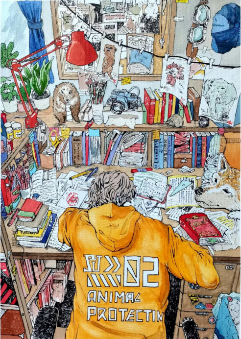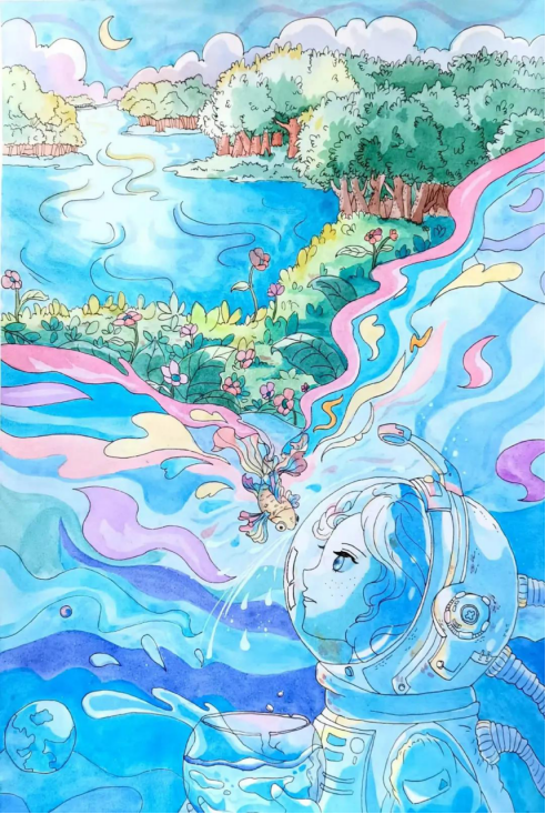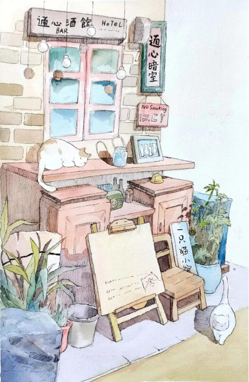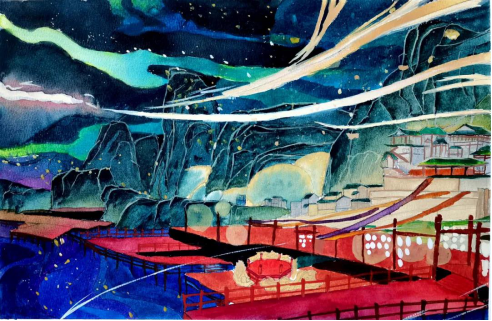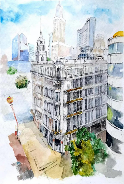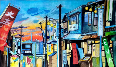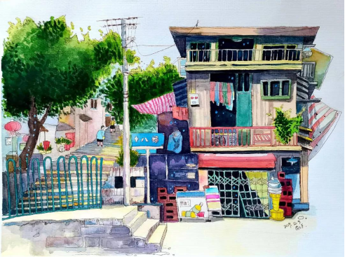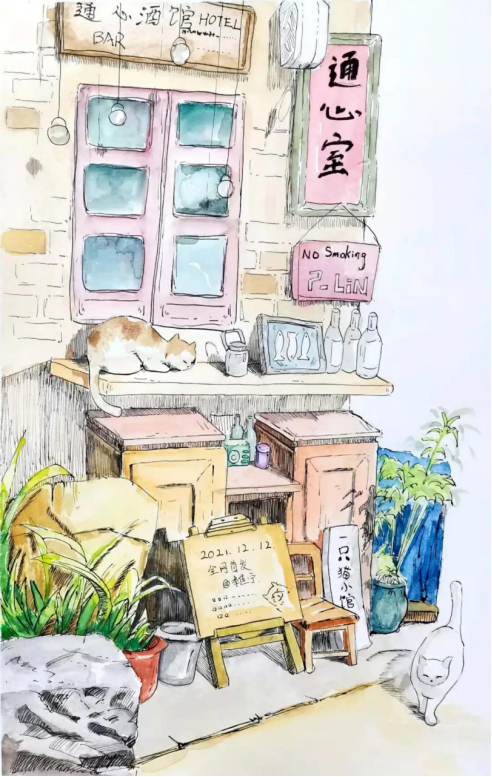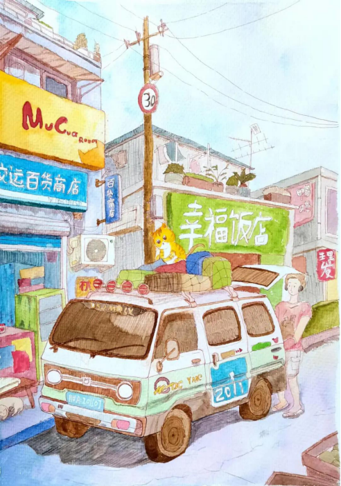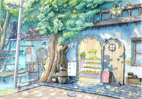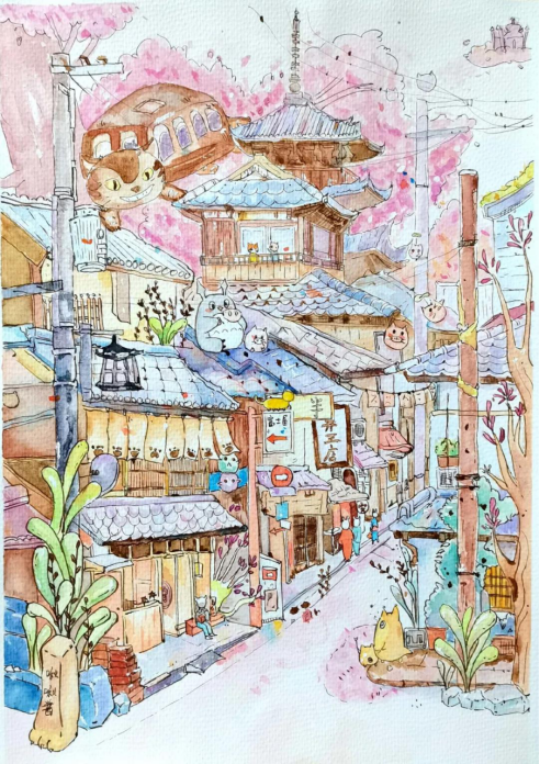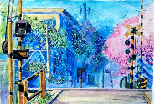 造型基础(三)场景色彩是数字媒体艺术专业本科班的专业基础必修课程。本课程在之前造型基础二场景透视课程基础上,经过各种空间的透视表达练习,强化学生的色彩表现能力,提高审美能力和对场景的造型能力。本次课程的训练,打破以往的水粉画绘制,采用水彩、水溶性彩铅、针管笔等工具,对学生的绘画有着承上启下的作用。