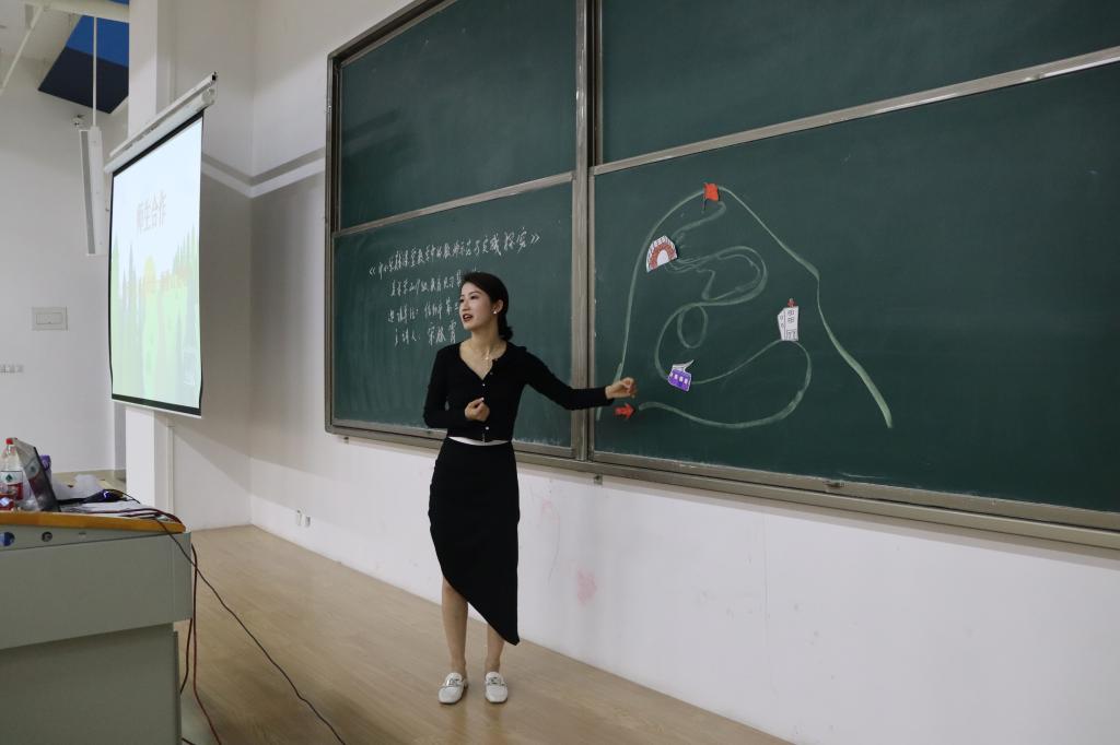 宋林宵老师以《中小学美术课堂教学中的教师示范与实践探究》为主题,先讲授了说课的技巧与注意事项,然后重点以美术公开模拟示范课的形式,给学生们上演了一场生动的、富有创意的小学美术课。课程以棋盘设计为主要内容,通过启迪教学、师生互动、课程小结、作业布置等课程设计,充分利用教具、板书设计等方式,直观地让学生们感受如何开展好美术课堂,大家都认真聆听,并做好听课记录。