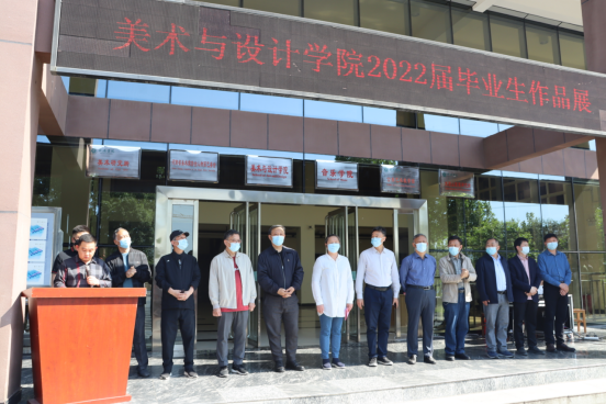 5月2日下午,“逐梦启航”tyc7111cc太阳成集团2022届毕业创作/设计作品展开幕式在艺术楼前广场举行。副校长王志华、王强、教务处处长陈文涛、科研处处长江成顺、评建办常务副主任张富庄、校地方民俗文化研究中心负责人、马克思主义学院党总支书记陈金强,tyc7111cc太阳成集团院长张瑞瑞、党总支书记袁军、教学副院长王伟,以及学院专家教授、指导教师和毕业生参加了开幕式。开幕式由袁军主持。