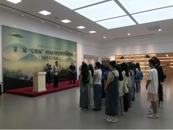 此次的实践教学环节是围绕《影像构图与用光》课程,结合喜迎第三十一届信阳茶文化节既第二届“信阳杯”中国乡村纪事全国摄影展(名家作品交流展)进行现场教学,对名家作品进行现场分析讲解。该教学环节受到了信阳市摄影家协会的热烈欢迎和大力支持。信阳市摄影家协会主席石文涛、信阳市摄影家协会秘书长柴玉海参加了当天的实践教学过程。