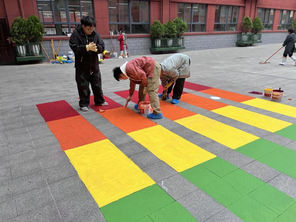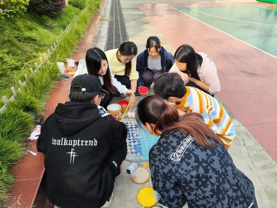 在羊山新区第十一小学、羊山新区外国语小学分校,实习生们精心组织了校园美化活动,为实习基地的校园井盖和地面涂抹上了斑斓创意的色彩,受到了实习单位领导师生的纷纷称赞。