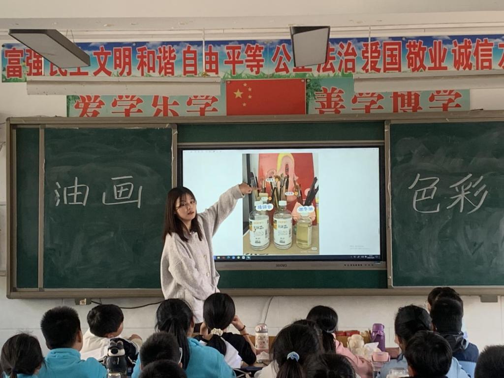 在信阳市第九小学、信阳市第一高级中学等实习基地,实习生们多次深入美术课堂认真听课。实习生们跃跃欲试,紧紧抓住学习和实践的机会,为即将登上讲台当好一名美术教师做充足准备。