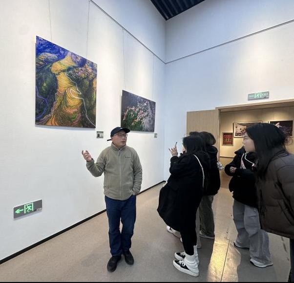 在实践教学过程中师生们深入摄影展现场,观看了来自全国各地的优秀乡村纪实作品。带队教师苏家兵表示,乡村纪实摄影不仅是技术的锤炼,更是情感的共鸣。希望同学们在观展与实践中,学会用镜头讲述有温度的故事,挖掘影像背后的社会价值,获奖的照片无论从选题和视觉表现中都有可以融入和借鉴的地方。学生李浩宇表示,这次实践让我深刻体会到,摄影不仅是记录,更是对话。乡村的每一处细节都承载着文化记忆,我们需要用更敏锐的视角去发现和传递这些故事。