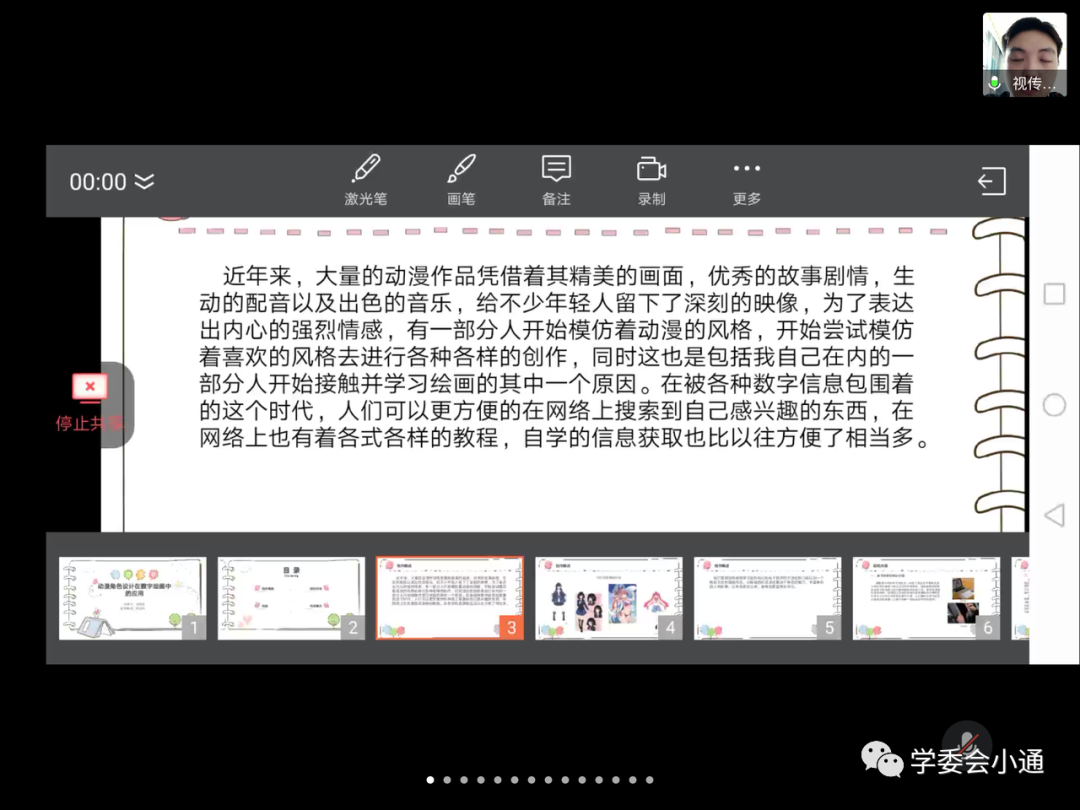 因为疫情的原因,根据学院安排,本学期的毕业创作(论文)我们采取了线上指导。虽然不能面对面的交流,但毕业创作的辅导工作依然保证了有序进行。线上指导相对线下来说,比较灵活,固定时间集中学生进行交流也较线下更加的方便、快捷。创作前期,我们小组以毕业创作为主题展开了视频会议,根据毕业创作的开题题目,集中讨论了创作的画面内容、表现技法、整体进度、创作期间遇到的问题等等,同学们根据自己的想法积极发言,互相学习。除了固定的会议讨论外,使用微信、QQ等网络平台进行指导交流,尽量与每位同学保持良好的沟通,根据每位同学的画面进度和表现给出不同的指导意见,一对一辅导,保证毕业创作(论文)能够按时、按质完成。各位同学在答辩前已按照学校要求完成创作和论文,且答辩效果非常好。