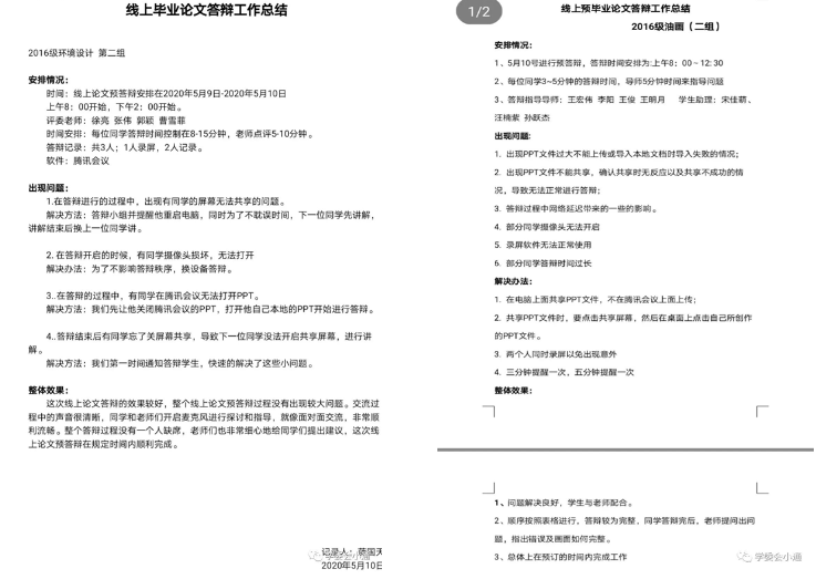 疫情期间的毕业设计(论文)指导工作,给老师及学生都带来了不少新的尝试和挑战。为保障设计及论文如期完成,寒假初期就要求学生定期汇报工作进度,使用QQ、钉钉等网络平台进行指导交流,每两周检查一次,及时有效督促学生。