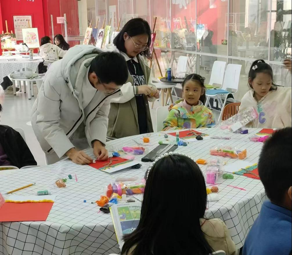 安培彬老师携同三名大四毕业生,为读者们演示了如何以立冬为主题创作超轻黏土画。在师生们的悉心指导下,小读者们和家长纷纷动手尝试,最终都完成了各具特色的超轻黏土画作品。活动在一片欢声笑语中落下帷幕,大家以一张温馨的合影定格了这段美好的时光。
