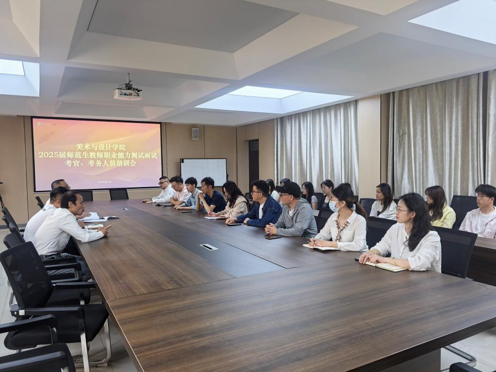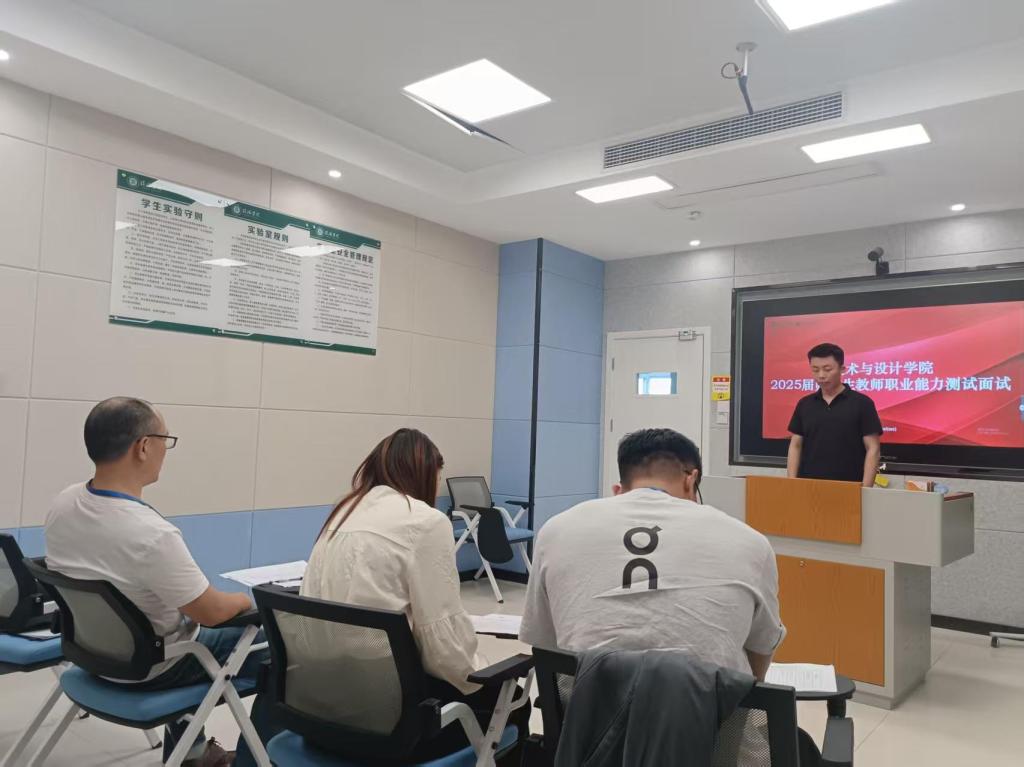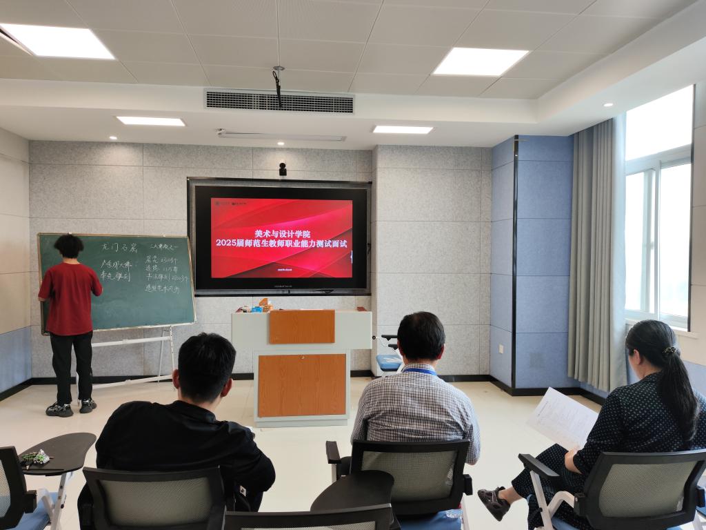4月20日,tyc7111cc太阳成集团在实训中心微格教室开展了2025届师范生教师职业能力测试面试工作。本次面试学院邀请了校内外中、高级职称教师担任评委,分为6个考核小组进行,美术学专业的196名学生参加了面试。