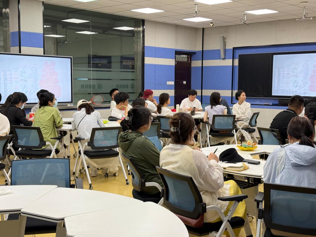 在教学沙龙活动中,魏迁以“书籍设计不仅是视觉表达,更是价值观传递”为主旨,立足多年教学与创作实践,深入阐释课程思政在艺术设计领域的实施路径。通过一系列实践案例,生动展现“美育+思政”如何驱动学生从技能习得走向价值认同,并强调艺术设计者的社会责任,在于用专业回应时代需求。现场研讨环节气氛热烈。