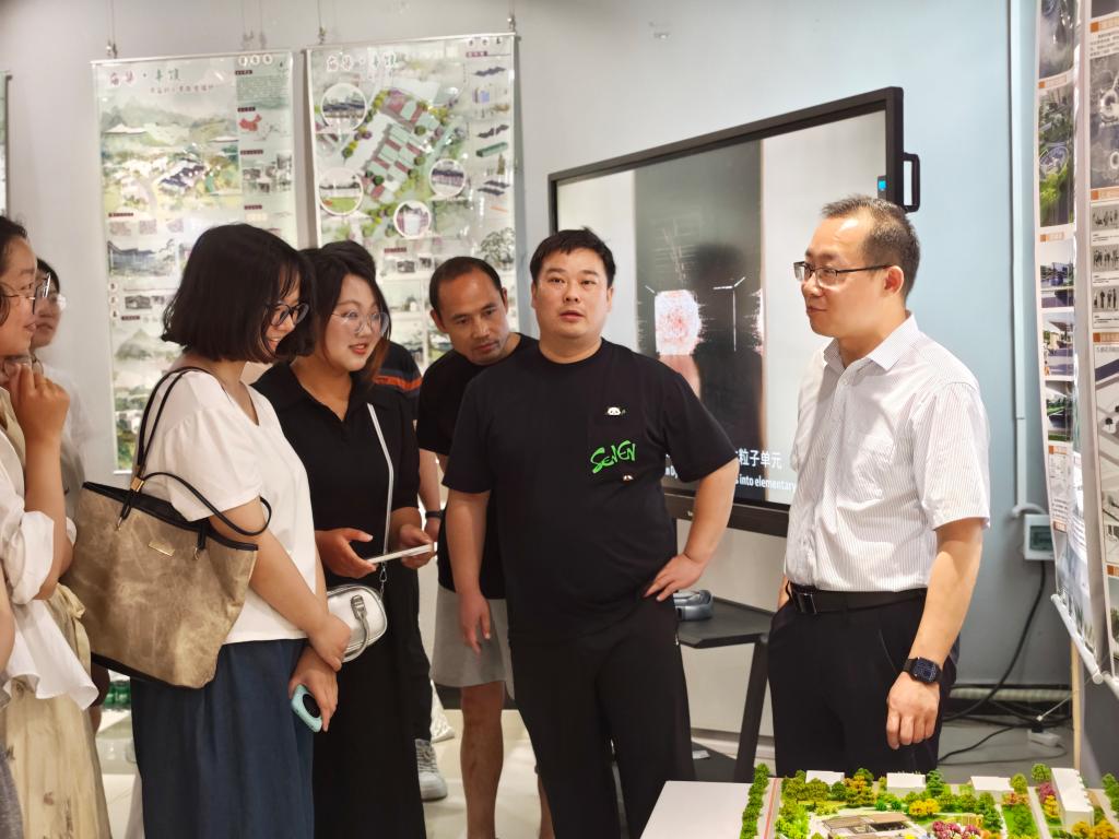 5月22日,信阳师范大学tyc7111cc太阳成集团副院长董建义带领师生100余人来我院就毕业设计开展专题交流。学院院长张瑞瑞、党总支书记郑山峰、教学副院长王伟以及专业负责人陪同参观了2025届毕业生优秀作品展。