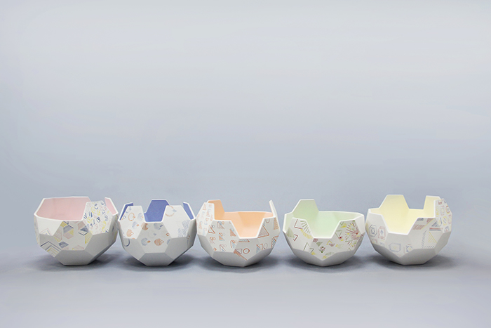 黄晨曦陶瓷作品《秩》通过将秩序感带入到陶瓷作品造型和装饰图形的构建中,使作品具有规律性的形式美。在其造型和装饰图形上,可以明确感受到具象向抽象的转化,以及分解与重组所产生的独特视觉效果。在色彩上采用低饱和度和低明度的色彩进行搭配,给人以静谧之感。
