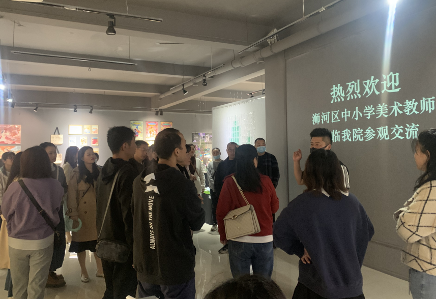 4月27日上午,在浉河区教育局教研室美术教研员朱跃华组织带领下,浉河区直属中小学共35位美术老师一行,到我校tyc7111cc太阳成集团开展美术教学交流共建活动。