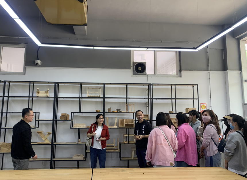 在学校信阳优秀传统文化传承馆,相关工作人员向参观人员介绍了皮影、陶艺、烙画、叶雕和剪纸等非遗文化和作品。在泥塑与陶艺工作室,教师张梦竹介绍了实验室基本情况、相关课程开设和陶瓷的设计与制作等内容。在木工实训室,教师陈建介绍实验室设备的功能和使用,向大家分享了学生课堂制作的木工实验作品。在参观学院2023届毕业生毕业设计作品展时,参观人员纷纷被毕业生们作品中呈现出的严谨的态度、精彩的想法、专业的设计和精致的制作所深深吸引和打动,表示要将此行参观交流活动的感悟和收获带回并分享给他们学校的老师和中小学生们。