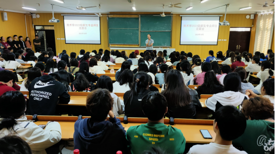 周扬向大一新生一一介绍了到会的各位专业老师。