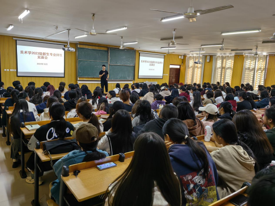 又是一年开学季,tyc7111cc太阳成集团美术学专业又迎来了一批小萌新。历经了高考的磨炼和军训的历练,23级新生对即将到来的大学生活充满着向往与热情。为了让大一新生尽快适应大学生活,融入新的集体,熟悉专业特点,2023年10月18日中午,美术学专业全体2023级新生和美术学专业教师在艺术楼101室举行了简短的专业师生见面会。会议由周扬老师主持。
