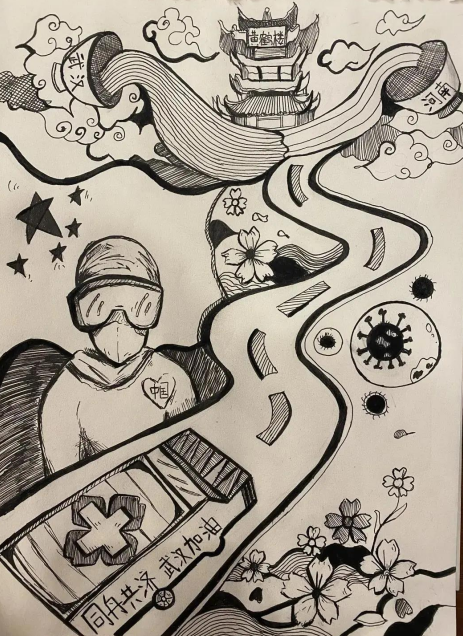 在大家一心与新冠病毒做斗争的时候,美院学子用自己的创意设计,创作出一幅幅讴歌白衣天使,弘扬正能量,为武汉加油,为中国加油的优秀艺术作品。很好展现了青年人积极向上的精神风貌。