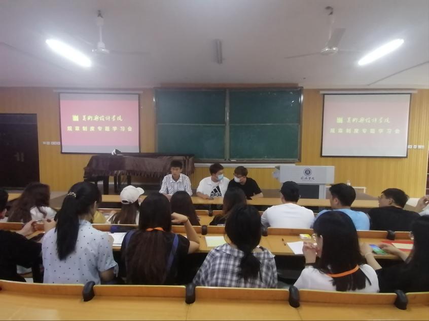 为深入贯彻落实习近平总书记致全国青联十三届全委会、全国学联二十七大的贺信和党中央致词精神,落实全国学联二十七大工作部署,加强我院学生会章程学习和基础性制度建设,进一步做好学院团总支、学生会工作。6月8日中午,学院团总支、学生会在艺术楼101室开展集体学习培训会。学院团总支副书记王恒,学生会主席团韩富奇、乔栋,团总支和学生会各部门负责人参加了本次会议。会议由韩富奇主持。