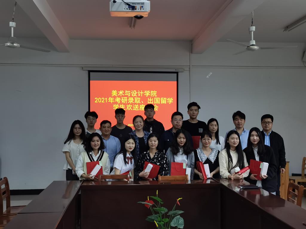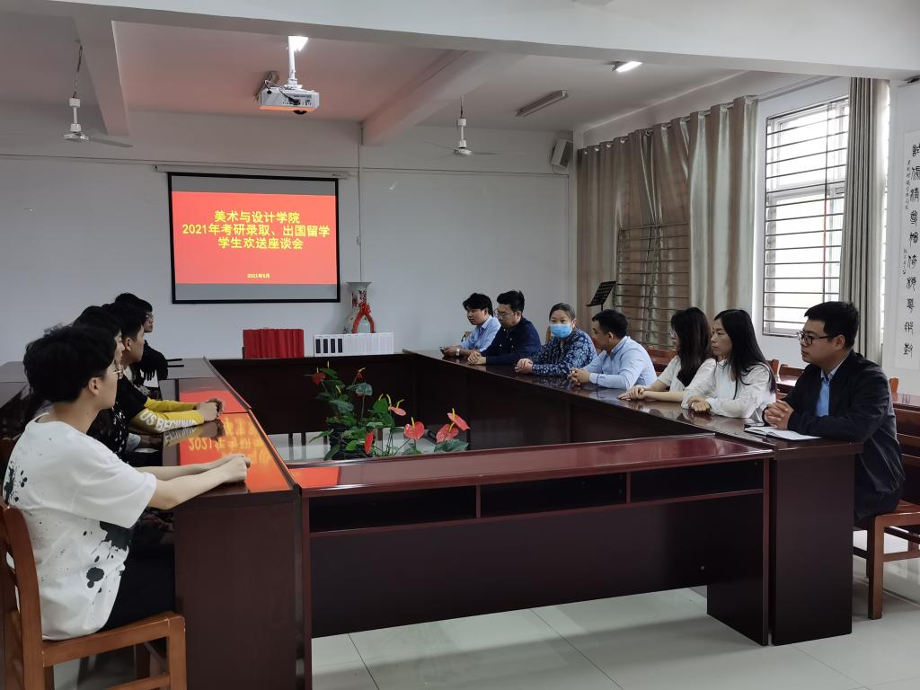 5月17日下午,tyc7111cc太阳成集团在艺术楼215会议室召开2021届考研录取、出国留学学生欢送座谈会。学院院长张瑞瑞、党总支副书记袁军、学工干事周扬,相关辅导员老师陈晓倩、邓先强、谭秀梅、刘加宽、夏晨翔,学院2021年考研录取、出国留学的学生共同参加了本次会议。会议由袁军主持。