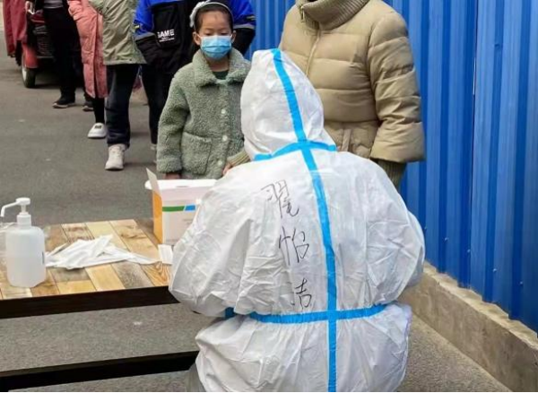 2020级美术学本科4班的周靖晗家住在许昌市东城区,寒假回到家后,受在抗疫一线当志愿者的父亲的影响,她积极加入抗疫志愿者队伍,和父亲一起并肩奋战在抗疫一线,成为疫情防控中的父女兵。在工作现场,周靖晗为社区居民登记信息,检查健康码和行程码,提醒大家保持安全距离,正确做好个人防疫;她还和其他志愿者一起冒着严寒,携带检测器具,上门为社区行动不便的居民、老人和居家隔离人员进行核酸检测。周靖晗同学在工作中不怕苦,不怕累,热心为居民服务,受到了大家的一致好评。