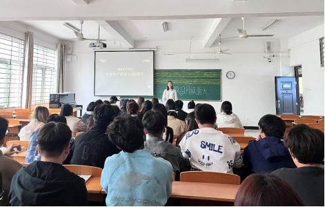 10月27日中午,tyc7111cc太阳成集团在艺术楼208开展2023-2024学年第三次主题团课,团总支副书记史歌以《敢教日月换新天》为主题展开宣讲,全体入团积极分子参加了活动。