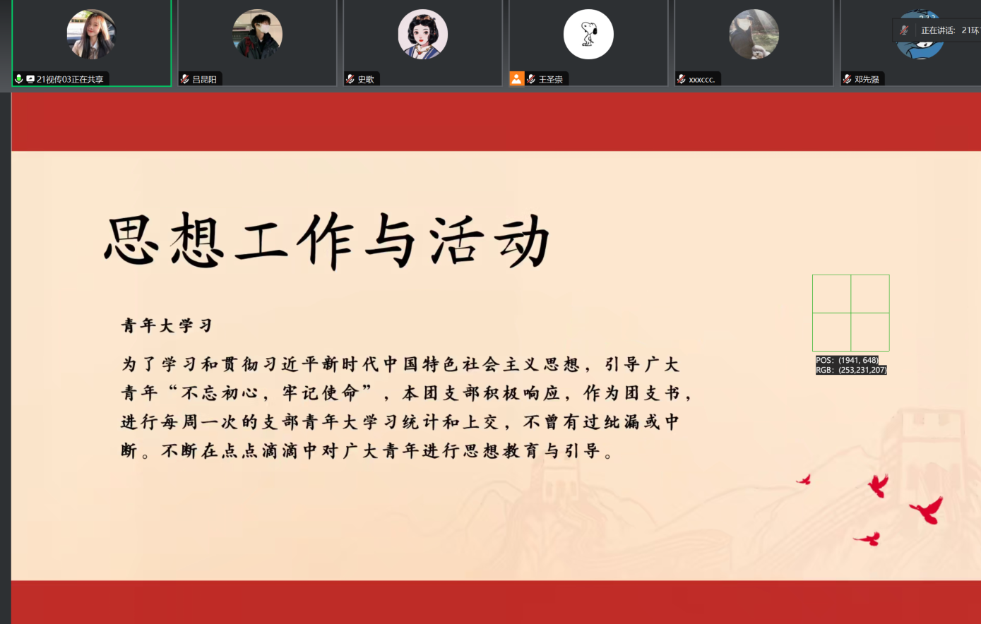 为进一步激发我院基层团总支活力,切实抓好团干部队伍建设,增强我院团组织的凝聚力和执行力,tyc7111cc太阳成集团于1月18日下午召开线上团支书述职评议会议,学院团总支书记邓先强及各班团支书参加了此次会议,会议由团总支副书记史歌主持。