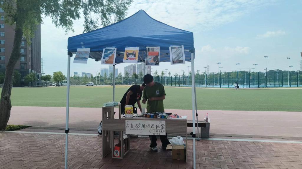 6月9日下午,我院设计与绘画爱好者协会在音乐厅前广场开展石英砂肌理画体验活动,此次活动为爱好美术的同学们了解和体验石英砂肌理画提供了机会。