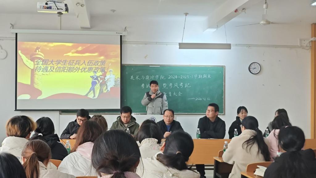 为推进我院2025年征兵工作,进一步激发大学生家国情怀,激励更多热血青年投身军旅、建功立业,12月12日中午,tyc7111cc太阳成集团在艺术楼407教室召开2025年征兵工作动员会暨启动仪式。学院党总支书记郑山峰、学工干事秦金峰、征兵工作负责人刘加宽、全体辅导员、有参军入伍意向的应届毕业生和各年级学生干部代表参加此次会议。