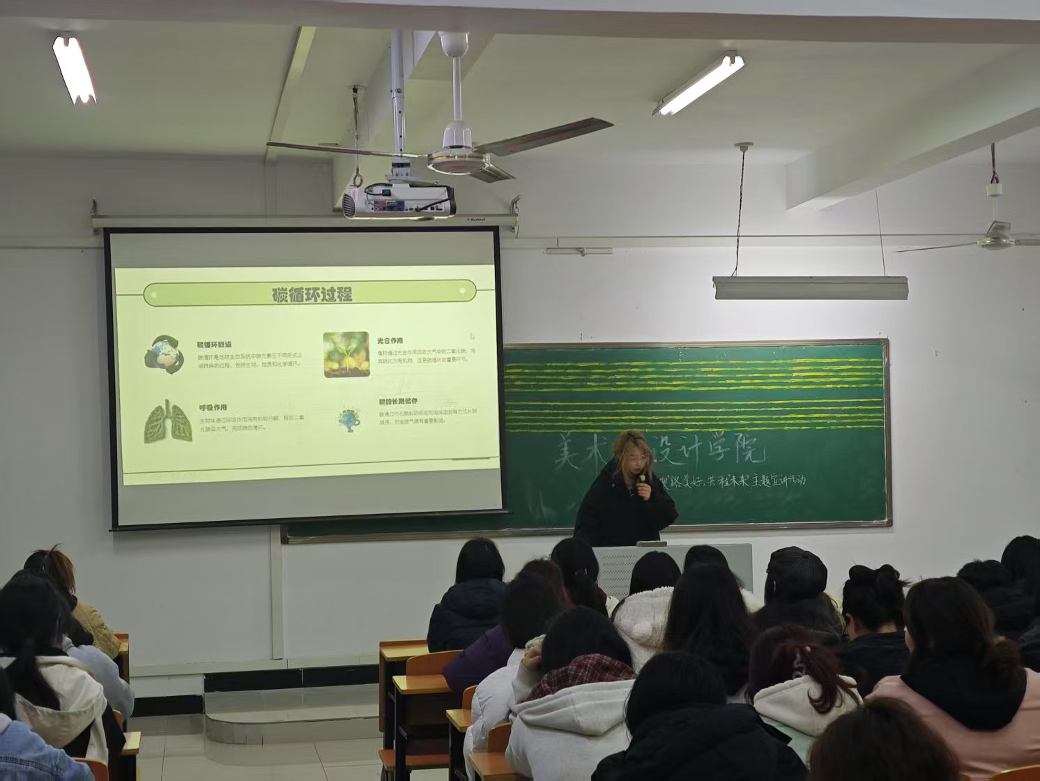 活动现场,宣讲团成员通过生动的图片、详实的数据和案例,向同学们展示了全球气候变化的严峻形势以及生态文明建设的重要性。宣讲团成员结合专业特点,与大家一起探讨了如何通过创新设计和技术手段推动绿色发展、减少碳排放,为实现可持续发展目标贡献智慧和力量。