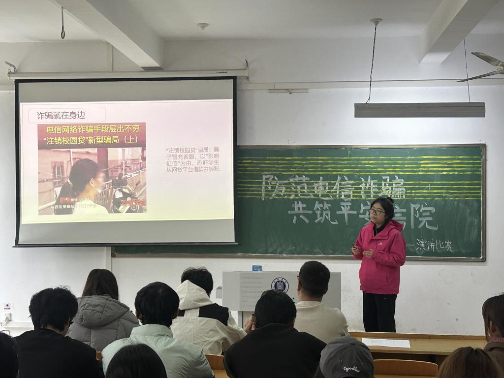 比赛中,参赛选手紧扣主题,结合真实案例与自身感悟,从不同角度剖析了刷单返利、虚假贷款、冒充客服等常见诈骗手段,揭露了不法分子利用人性弱点实施犯罪的本质。他们娓娓道来分享识骗经验,呼吁同学们警惕陷阱,用生动的语言、鲜活的案例引发在场师生强烈共鸣。现场还设置了防诈知识问答环节,通过互动形式巩固学习成果。