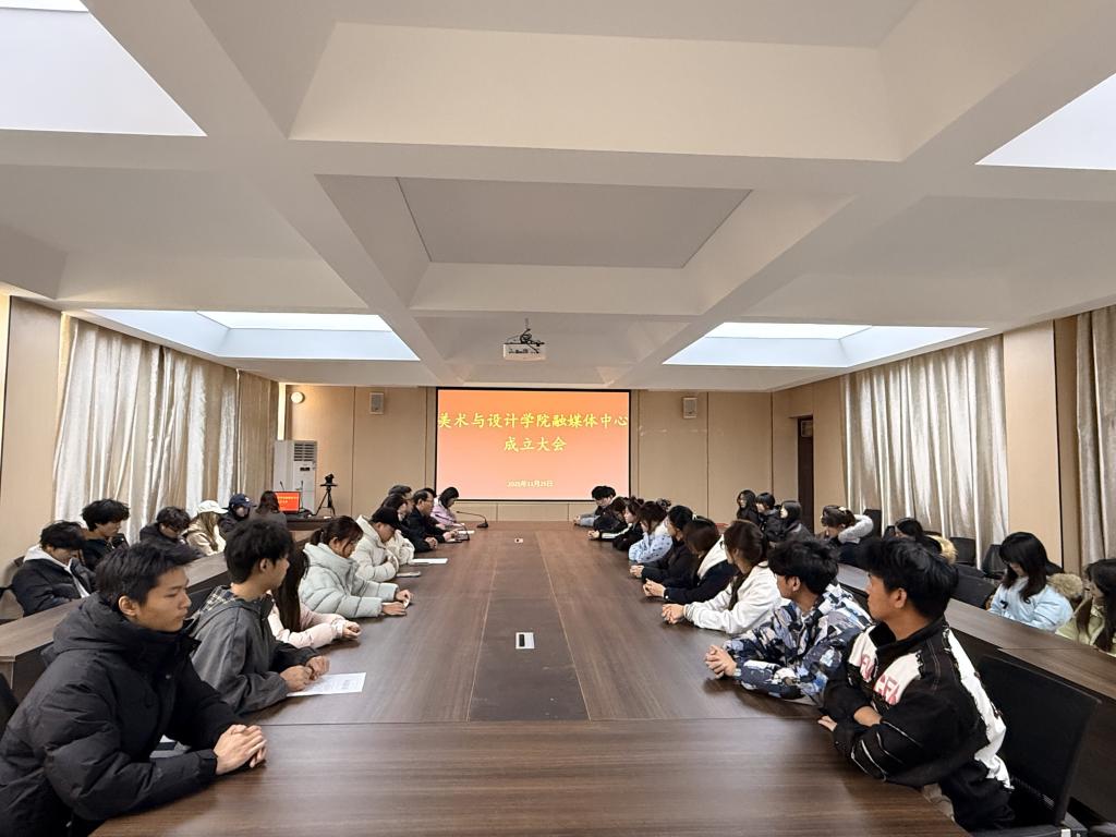 11月25日,tyc7111cc太阳成集团在艺术楼215会议室召开融媒体中心成立大会。学院党总支书记兼融媒体中心主任郑山峰,教学副院长王伟,行政干事兼融媒体中心副主任刘梦依,融媒体中心副主任李若瑜、马鸣远,团总支书记邓先强及第一届融媒体中心学生共同参会。会议由刘梦依主持。