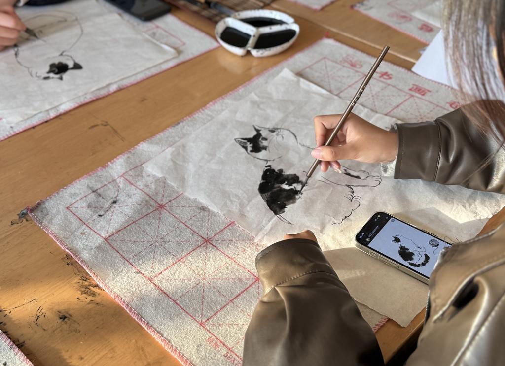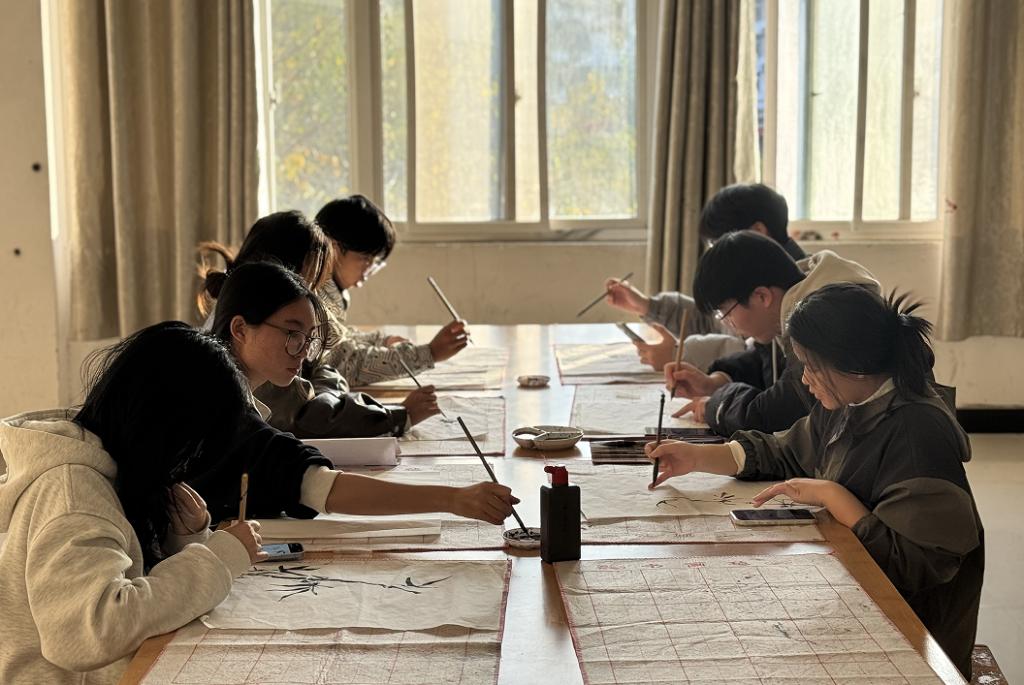 活动现场,社团负责人倪露萍首先为同学们进行了详细的国画基础知识讲解,包括国画的历史渊源、基本技法以及常用工具的介绍。随后,现场示范了国画的基本笔法和构图技巧,让同学们对国画有了更直观的认识。在实践环节,同学们纷纷拿起毛笔,尝试进行国画创作。他们或描绘花草,或勾勒翠竹,一幅幅充满创意的作品在笔下诞生。