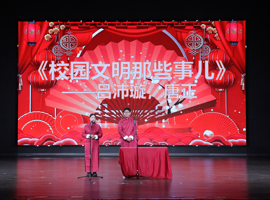 此次晚会在全场观众的热切期待中拉开序幕。全体辅导员与25级班长带来的开场舞瞬间点燃现场。随后的节目精彩纷呈:舞蹈《相亲相爱》展现凝聚力;唐鱼琦、徐学思同学演唱的《找自己》唱响青春探索;小品《请你阻止我》提醒大家防范电信诈骗;解开老师的乐器独奏《I BELIEVE》旋律悠扬;唐正、吕沛璇同学的相声《校园文明那些事儿》在欢笑中引导大家争当文明大学生;舞蹈《我的未来式》张扬活力;合唱《动画旋律时光机》唤醒大家童年回忆;李嘉玉、马晓睿同学的歌曲《一路生花》寄托期许;《舞蹈串烧》再掀高潮;范郁、李嘉乐的《告白气球》则洋溢浪漫气息;朗诵《那年中国青年正十八》铿锵有力,引发共鸣;《风采走秀》融合专业创意,展现学子风采。晚会最终在姜欣宇等同学的合唱《我们的明天》中圆满落幕,歌声承载憧憬,凝聚奋进力量。