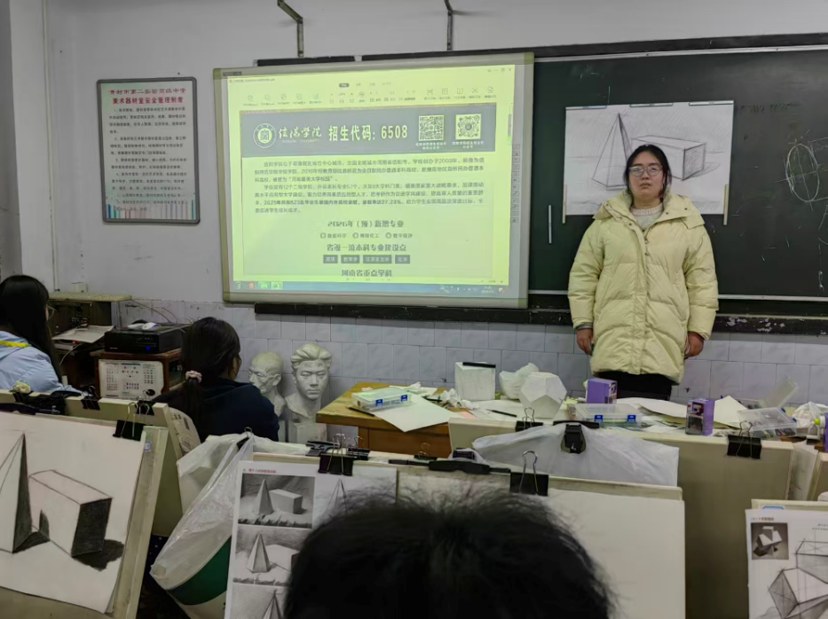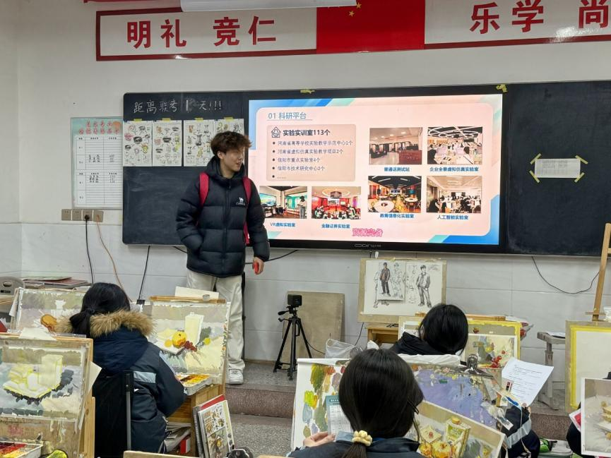 顾怀新枝队胡玲、馨万茜、汪柯鑫三位同学回到驻马店经济开发区高级中学,以“顾念师恩,薪火相传”为主题开展交流活动。队员们走进教室,与学弟学妹亲切互动,分享高中时光的珍贵回忆与大学成长的精彩瞬间,详细讲解艺考备考、专业学习、生涯规划等关键内容。她们耐心倾听困惑、细致解答问题,用温暖与真诚传递关怀,用经验与鼓励点亮梦想,充分展现美院学子感恩知责、向上向善的良好风貌。