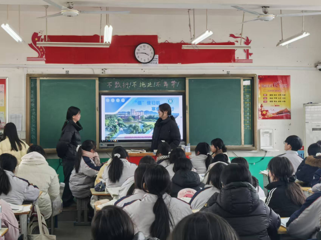 新程领航队郑丹、贺心怡两位同学回到获嘉县高级中学,以“领航新程,筑梦未来”为主题开展实践交流。她们立足高中与大学的衔接点,围绕学习习惯培养、备考压力疏解、专业选择规划等内容进行细致讲解,用自身成长经历为学弟学妹答疑解惑。通过生动的讲述与真诚的交流,不仅拉近了彼此距离,更点燃了大家追逐梦想、奋勇向前的热情,以青春榜样之力,助力高三学子稳步前行。
